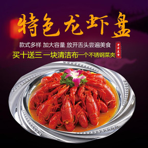 加厚小龙虾盘不锈钢盘子家用圆盘浅盘海鲜盘小龙虾专用...