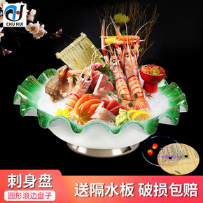 加厚玻璃刺身盘酒店大龙虾专用盘三文鱼冰盘鱼生摆盘创...