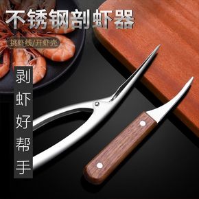 家用不锈钢剥虾小龙虾皮皮虾工具木柄挑线器厨房小工具...