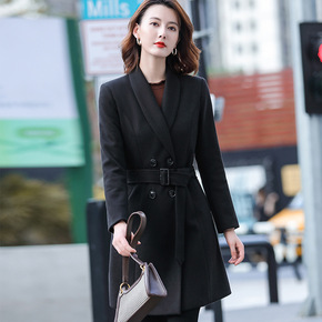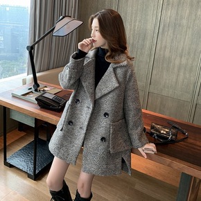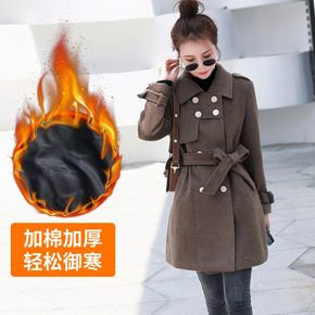 2021秋冬季复古西装领夹棉加厚小个子毛呢中长款双...