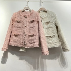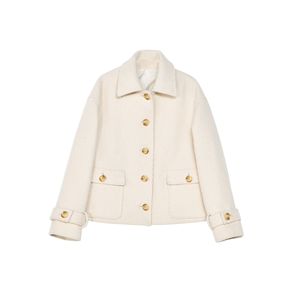 21年秋冬日式纯色粗斜纹肌理毛呢宽松短款加棉大衣外...