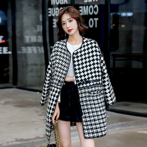 2021秋冬装新款女士格子毛呢长款大衣外套欧美跨境...