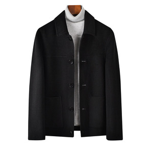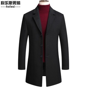 冬季新款男士羊毛呢大衣中长款男西装领加厚外套中年商...
