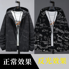 男夹克秋冬新品男士夹克衫男装休闲潮流宽松衣连帽薄外...