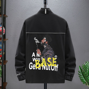 春秋大码时尚印花胖仔大码青少年潮流立领风衣...
