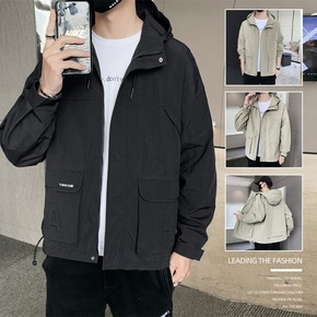 2022春季新款夹克外套男韩版青年连帽休闲工装上衣...