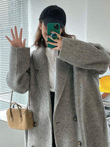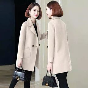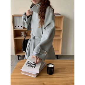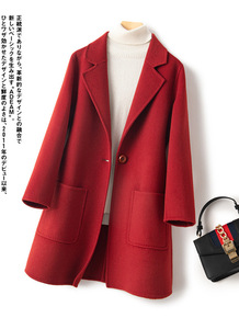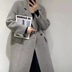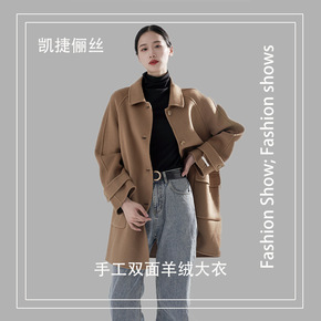 2022秋冬新款双面羊绒大衣女中长款韩版宽松双排扣...