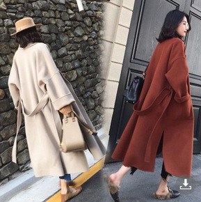 风衣2022秋冬新款毛呢大衣女过膝加厚大码翻领超长...