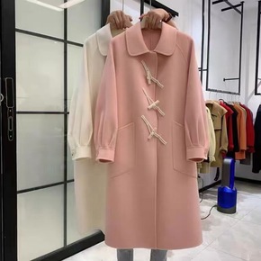 22新款推荐浪漫粉双面羊绒大衣女中长款冬季气质毛呢...
