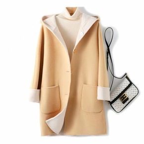 两面可穿连帽双面绒羊毛呢大衣女2022春季新款中长...