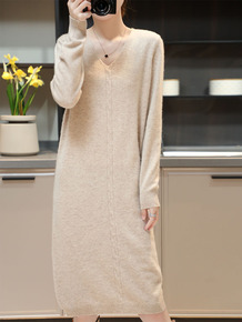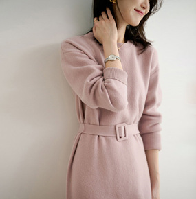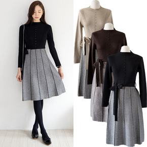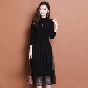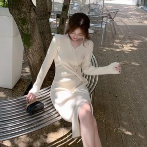 针织连衣裙秋冬新款2022气质圆领长袖中长款配大衣...