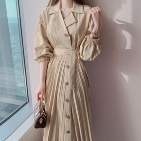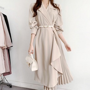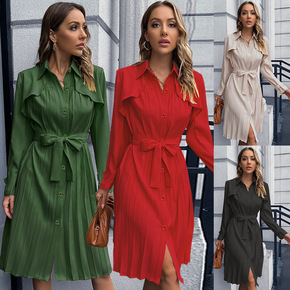 休闲风衣气质修身百褶裙2022欧美跨境亚马逊新品女...