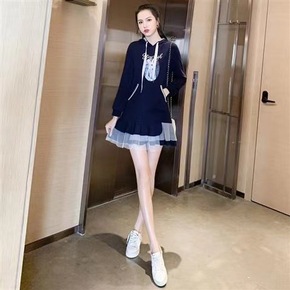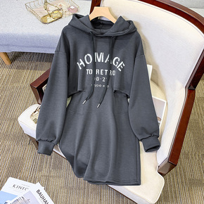 大码女装秋季新款中长款连帽卫衣裙遮肚子显瘦胖妹妹遮...