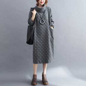 韩版大码实拍现货2022秋冬新纯棉卫衣裙女高领宽松...