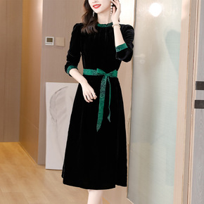 新款气质丝绒连衣裙女新款妈妈秋冬装洋气收腰长袖仿真...