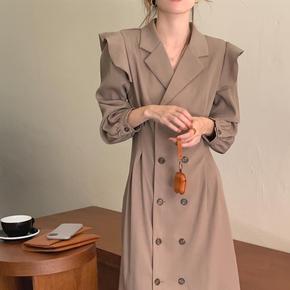 2022秋季新款赫本风宽松显瘦收腰长袖西装裙法式风...