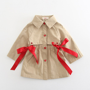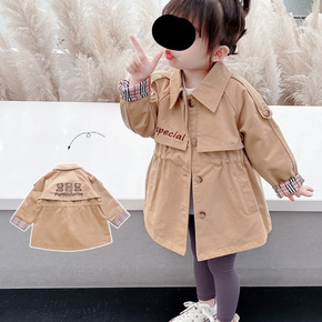 IDEA2019春季新品女童纯色韩版风衣宝宝翻领中...