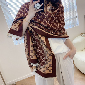 2022冬季新款仿羊绒围巾韩版提花保暖围空调房厚披...