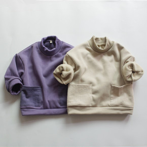 2022韩儿童加厚摇粒绒卫衣高领保暖上衣男女小童中...