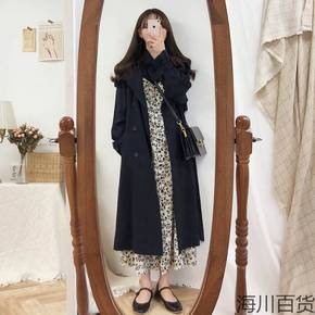 复古时尚黑色双排扣系带风衣女2022年新款韩版宽松...