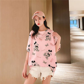 网红ins超火短袖t恤女夏季韩版宽松大码中长款米奇...