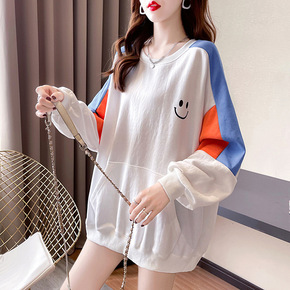 早秋女装新款拼接撞色长袖卫衣女韩版学生宽松圆领套头...
