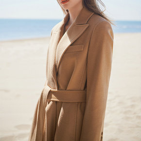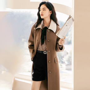 YFL 2022春季新款毛呢外套毛领单排扣双面呢大...