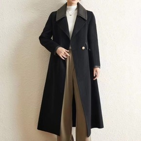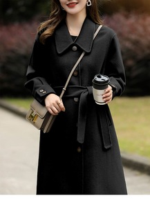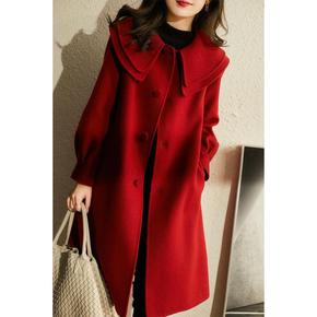 2022春季新款羊毛大衣女减龄娃娃领双层领中长款绵...