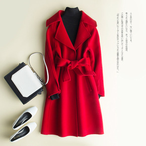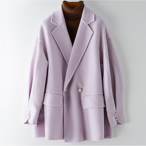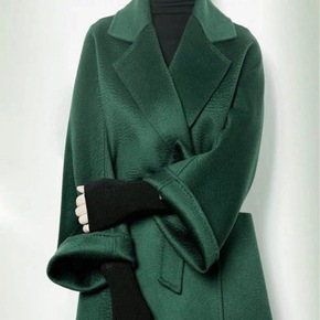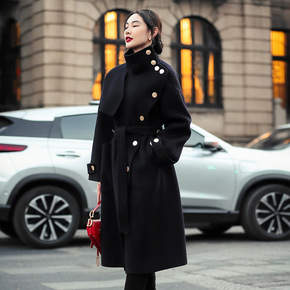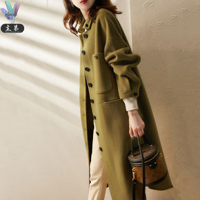 新款茧型毛呢外套女中长款韩版宽松双面妮子大衣女20...