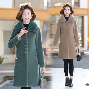 中年妈妈冬装水貂绒外套中长款加厚衣服洋气中老年人女...