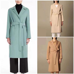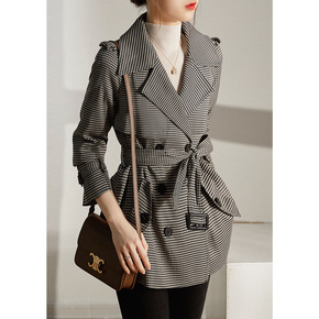 外套女2022春季新款韩版气质长款大衣系带收腰休闲...