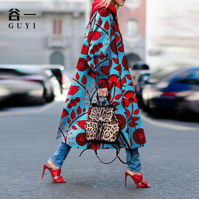 2022秋冬亚马逊跨境现货欧美时尚中长款翻领印花长...