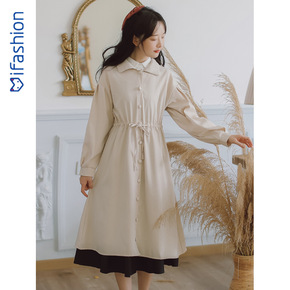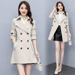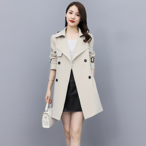 20年秋季新款韩版修身纯棉中长款风衣时尚气质上衣休...