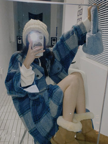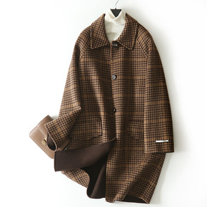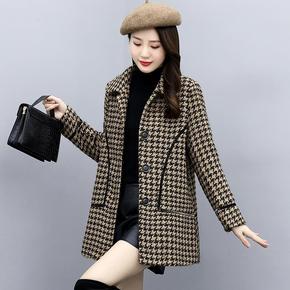 格子毛呢外套女中长款2022秋冬新款流行韩版小个子...