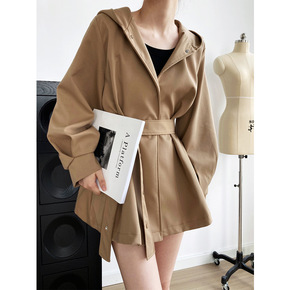 风衣外套女小个子2022春新款女装宽松中长新英伦风...
