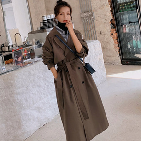 咖啡色垂感风衣女中长款2022春秋新款韩版气质流行...