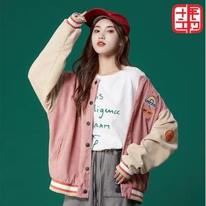 。棒球服女春秋ins潮2020年新款宽松版学生粉色...