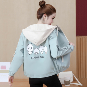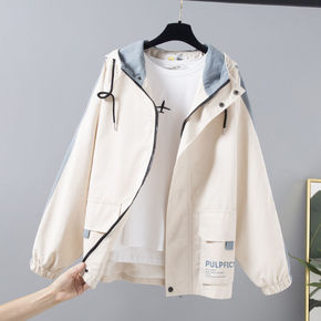 风衣女春秋季新款印花夹克bt学院风韩版宽松胖MM大...