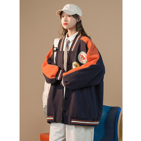 外套女春秋季宽松韩版撞色短款棒球服2022年新款学...