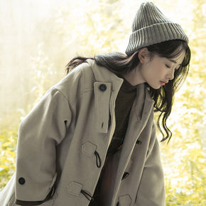 牛角扣呢子大衣女秋季日系韩版中长款学院风森系毛呢外...