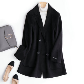 工厂直销冬新款小个子短款双面羊绒大衣女韩版宽松西装...
