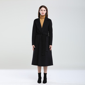 1132#黑色双面羊绒大衣女中长款2021年新款秋...
