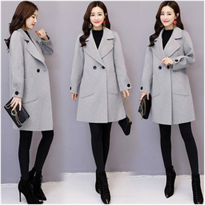 实拍新款毛呢外套女中长款韩版宽松百搭秋冬季气质显瘦...