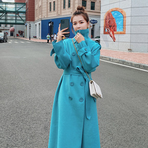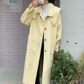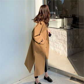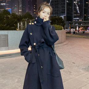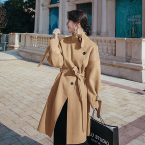 2021秋冬新款羊毛系带双面呢羊毛大衣女中长款宽松...