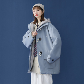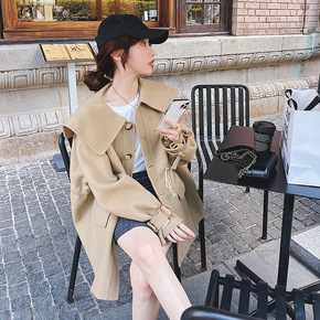 实拍新款海军领毛呢大衣女秋冬季小个子短款抽绳工装风...