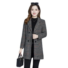 实拍2021新款黑白格毛呢外套女小个子秋冬韩版气质...