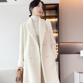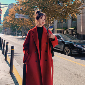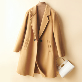 双面呢羊绒大衣女西装领中长款毛呢外套韩版宽松羊毛大...