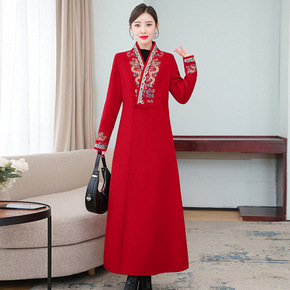 2021秋冬新款中国风女装中式复古绣花交领毛呢外套...