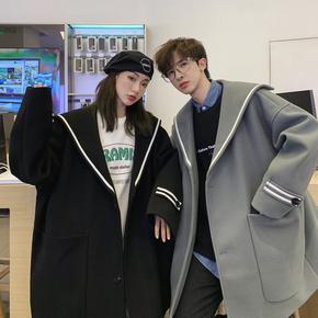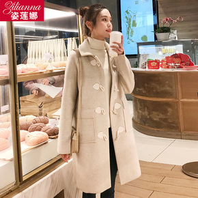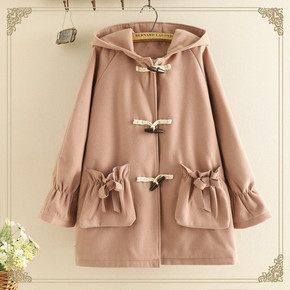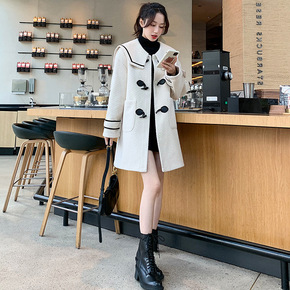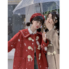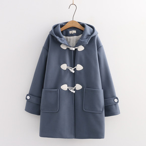 可爱牛角扣加棉毛呢大衣冬季学院风jk制服外套宽松海...