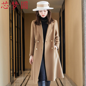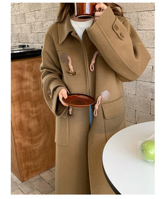 2021中长款新款流行冬装学生赫本风双面羊绒宽松毛...